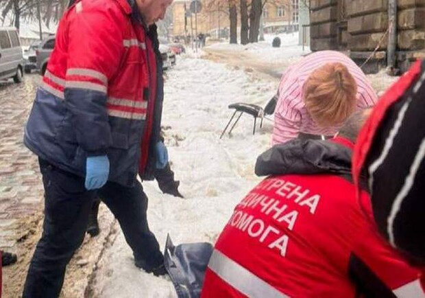 Небезпека зверху: у Львові на жінку впала брила снігу
