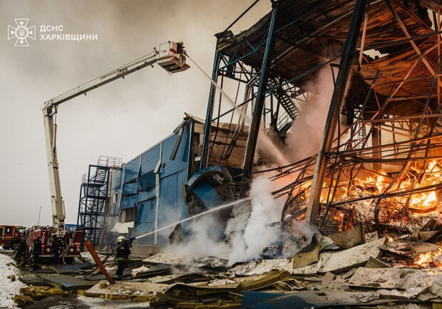 Рятувальники більше доби борються із вогнем після обстрілу складів під Харковом